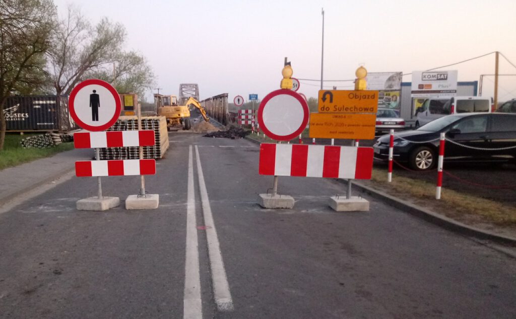 Środa 22 kwietnia to pierwszy dzień drugiego tygodnia (8 dzień) remontu staruszka mostu, który za tydzień skończy 95 lat. Jego całkowite zamknięcie nastąpiło 15 kwietnia po wielu perturbacjach przetargowych i przygotowawczych do remontu. Wrocławskie konsorcjum, które wygrało przetarg napotkało wiele trudności z przejęciem zadania m.in. z powodu pandemii. Teraz, kiedy już weszli na plac budowy pierwszy dzień poświęcili na zabezpieczenie terenu remontowanego obiektu żeby przypadkiem nikt nie wjechał czy wszedł na plac budowy (ciężkie kary na kierownika budowy). Następny dzień to frezowanie asfaltu przez zielonogórską firmę zajmującą się takimi robotami na lubuskich drogach. Jak nas poinformowano – bez sensu było by ściągać na jeden dzień roboty własne maszyny z Wrocławia. Kolejnego dnia zaczęto rozkuwać krawężniki betonowe a następnego zaczęto zdejmować bariery dźwiękochłonne z konstrukcji mostu. Kolejny dzień to początek „dziurawienia” mostu…