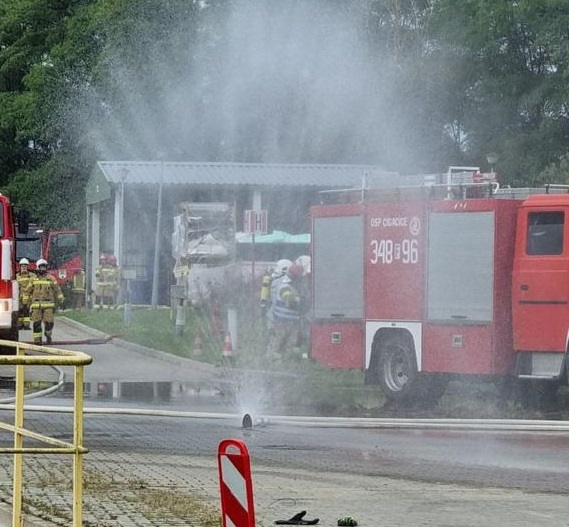 W ćwiczeniach oprócz strażaków z Jednostki Ratowniczo – Gaśniczej PSP z Sulechowa udział wzięła grupa chemiczna z JRG** PSP nr 1 w Zielonej Górze oraz jednostki OSP Kije, OSP Mozów oraz OSP Cigacice. Dzięki uprzejmości kierownictwa zakładu strażacy mieli okazję zapoznać się z charakterystyką zakładu, procesem produkcji oraz występującymi na terenie zakładu zagrożeniami.”